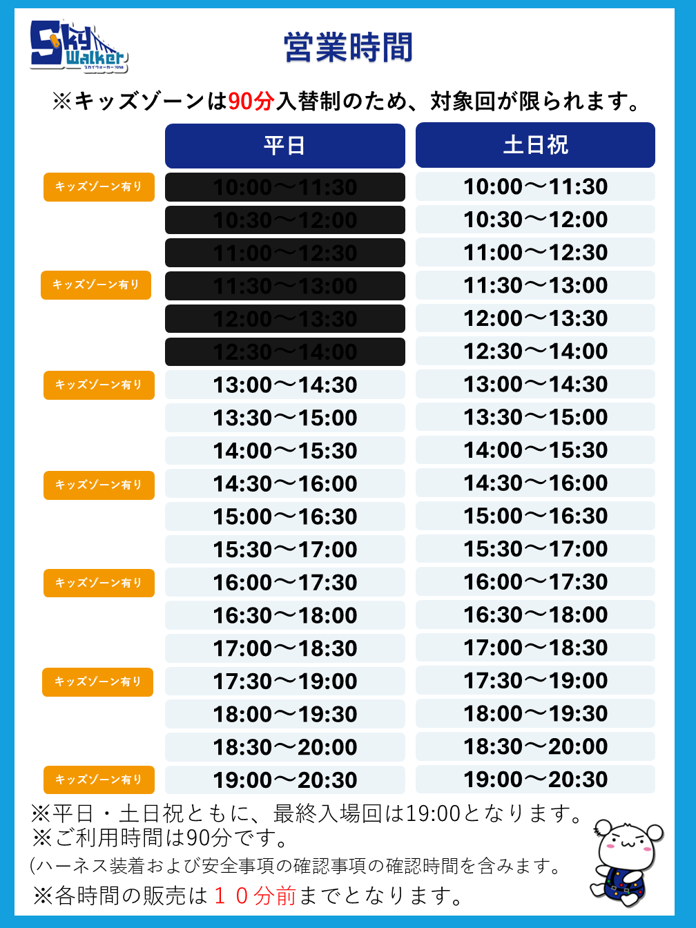 〇キッズゾーンは、安全面を考慮し90分完全入替制のため、他の券種と時間枠が異なります。